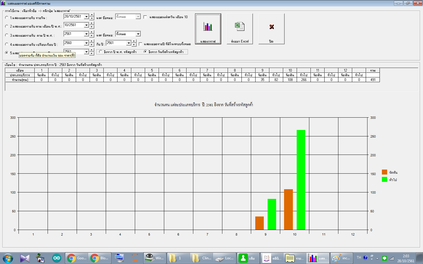 - หน้าต่างแสดงสถิติ แสดงสถิติยอดรายรับและแสดงผลกราฟ